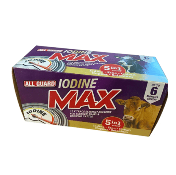 All Guard Xtra Max Iodine is a slow release multi trace element bolus for cattle from Mayo Healthcare- in packs of 10.