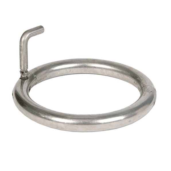 Vital to cattle restraint and control, bull rings are integral to livestock management. This bull ring is made of quality stainless steel that does not rust or corrode easily. The long sharp point of the self-piercing ring cuts a clean hole as you insert it into the nasal septum of the animal. No other attachments or tools are necessary with this self-piercing bull ring.