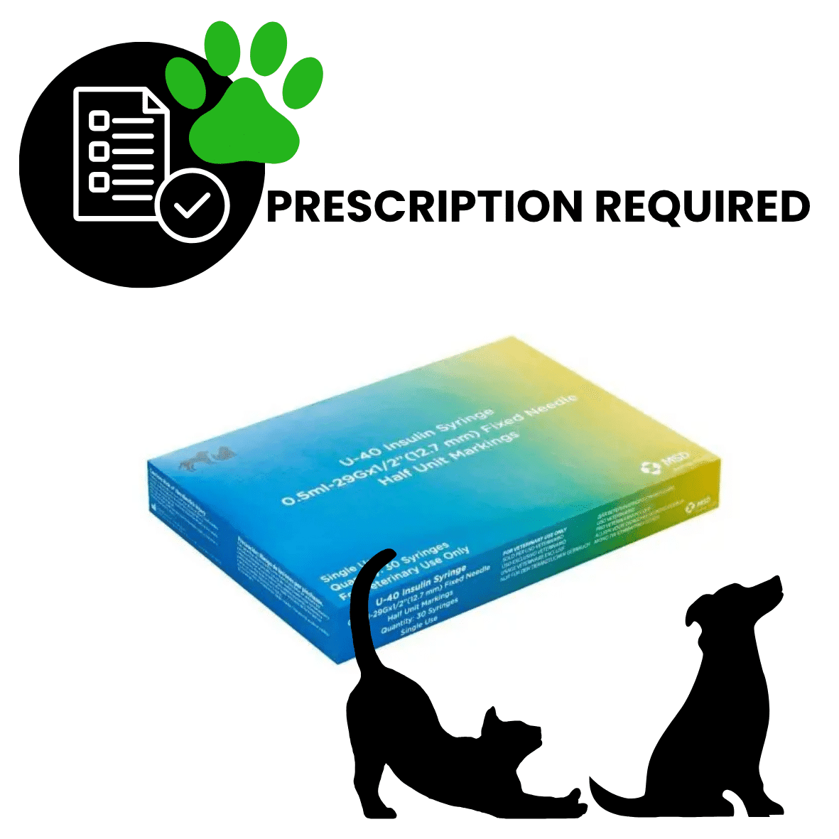 Complete with needles (29G x 1/2 inch fixed needle) for use with Caninsulin products only. These 0.5ml syringes allow 20 units maximum.