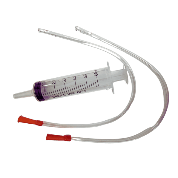 Graduated 60ml syringe with 2 catheters. Essential aid at lambing for dosing colostrums, etc.